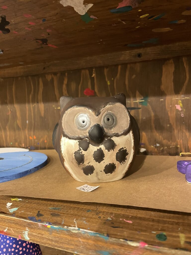 After, my son went back to laser tag and my daughter went off to arts and crafts where she painted a beautiful owl: