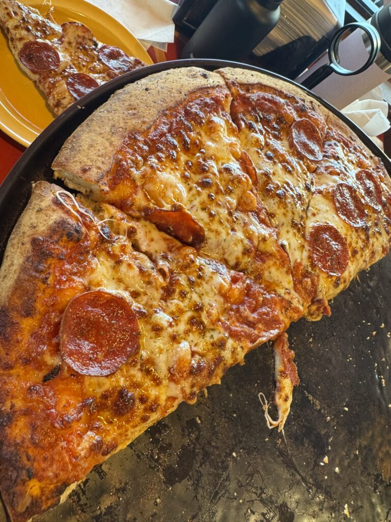 We doubled back to Brickolini’s Pizza and Pasta for lunch at this point. We initially wondered if the 16” pizza was going to be enough to feed four of us, but at $27.99 per pizza we figured we could order a second one if needed:
