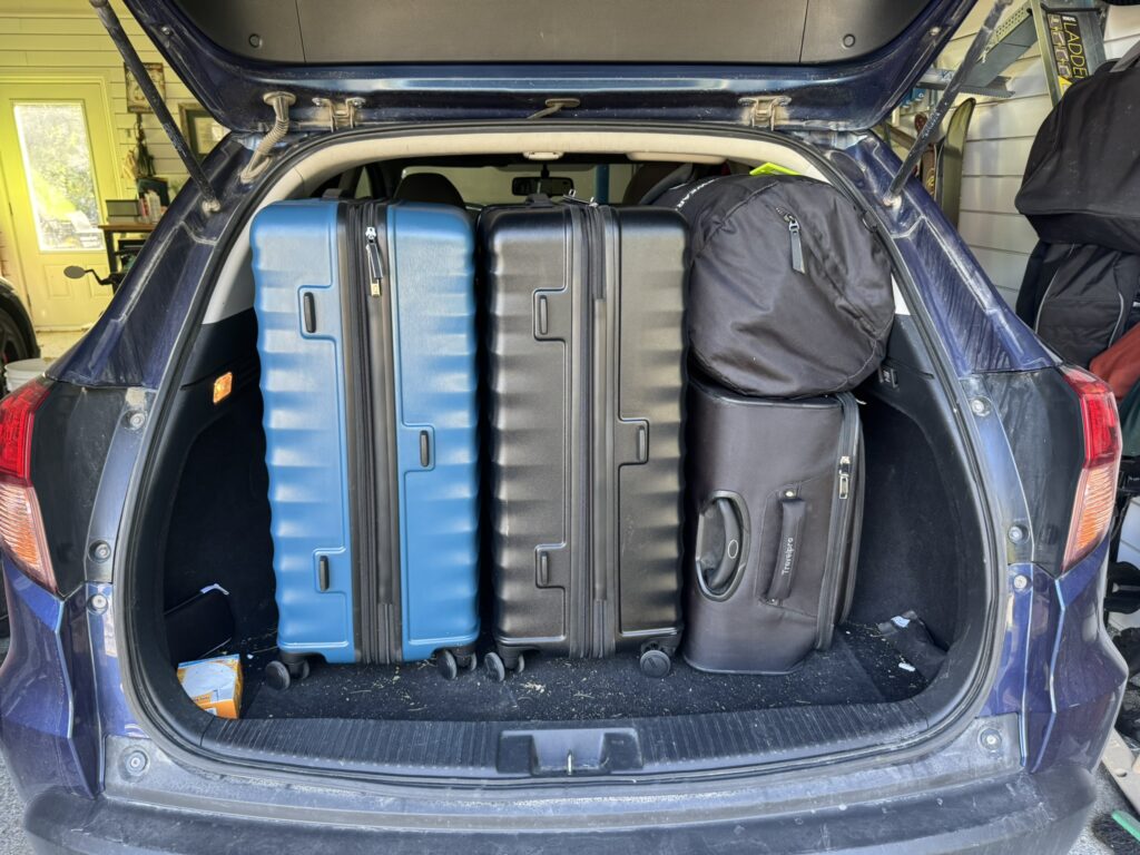 I loaded the luggage into our ‘backpack’ (a 2016 Honda HRV):
