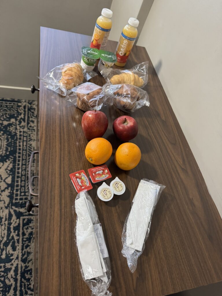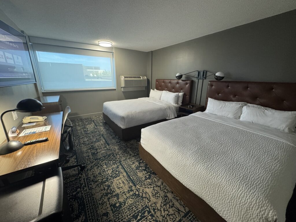 About 10 minutes driving and we were there. No line-up to check-in, and I was able to arrange interconnecting rooms without incurring extra charges. I mentioned our early departure, and the front desk staff kindly pointed out that we could get a cold breakfast if we wanted and that early-morning shuttles would run twice as often – every 15 minutes.