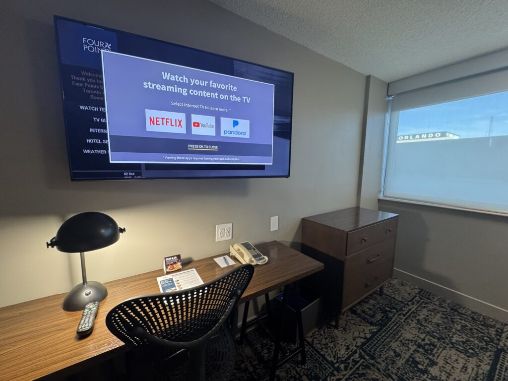 The Park ‘n’ Fly shuttle was waiting and ready to go. Technically they don’t stop at any of the hotels, but the driver said he could get me close. That was good enough for me – the Four Points wasn’t far, but it’s not the most pleasant stretch of road to walk. He managed to drop me at the nearest intersection, perhaps 200 metres from the front door.