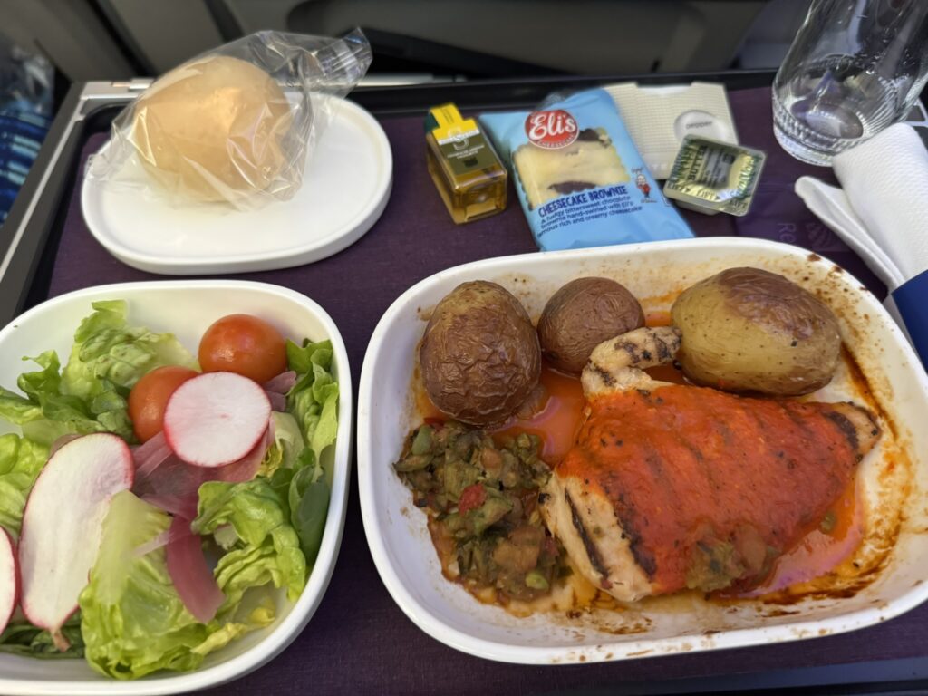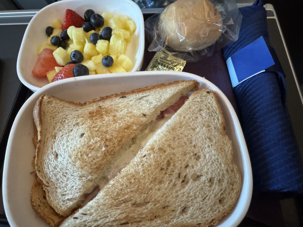 It was perhaps one of the better airline meals I’ve had. Nice and simple, which is the way it should be. The lower slice of bread was soggy, but the top one was still nice and crunchy.
