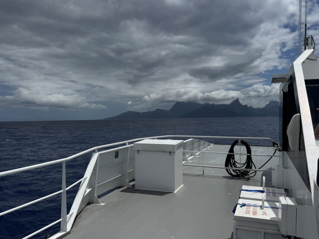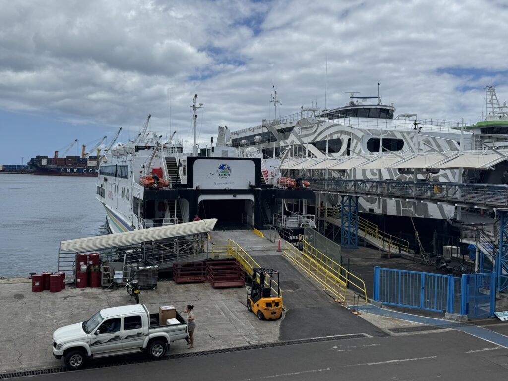 This was indeed what she meant, so I collected the family, presented our tickets, and joined the line to board the Aremiti ferry.