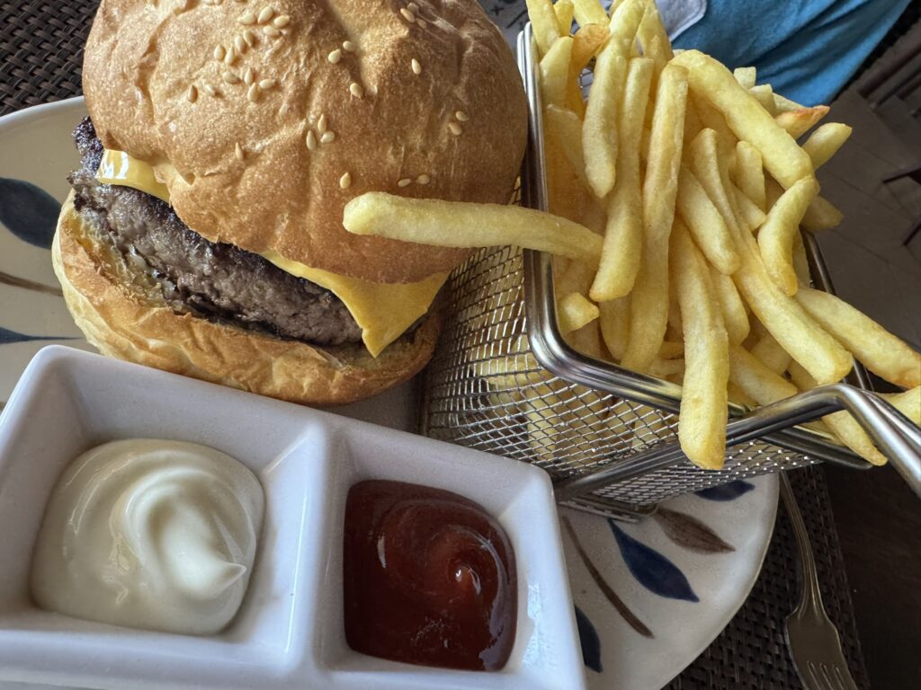 Otherwise, electricity is tied to the room card – which is a bit irritating when you’re trying to charge devices – and wifi does not stretch all the way to the room. The fluorescent light bulbs also aren’t particularly easy on the eyes. Meals are pricy but it’s a decent restaurant with a great view, and they don’t seem to be particularly more expensive than anywhere else we’ve eaten thus far.