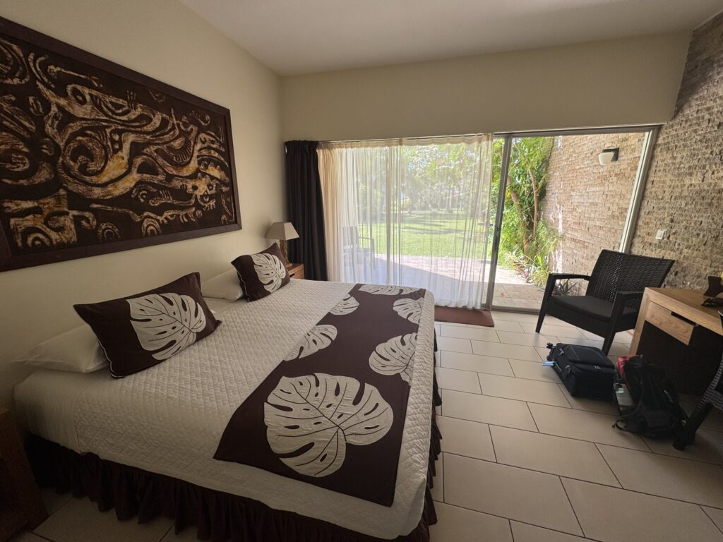 The Royal Tahitien is another of our budget options, but it looks pretty decent. Reviews have referred to it as “tired” and “dated” but we found the rooms to be clean and serviceable, particularly at around US$175 per room per night. I found the decorations to be tasteful and understated, and I particularly liked the little lanai area out front.