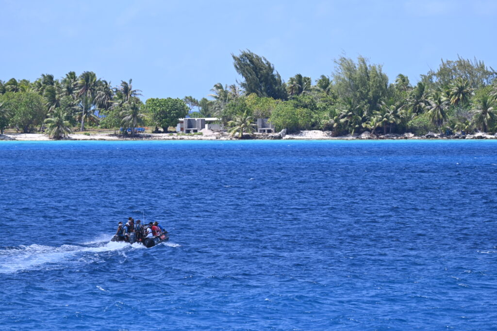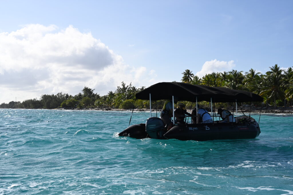 Zodiac time! Always feels good to get back onboard. Despite our anchorage in the heart of the Rangiroa lagoon, we still had somewhere around 1.5 metres of swell which made for a bit of a dicey boarding and zodiac cruise. But we managed all right.