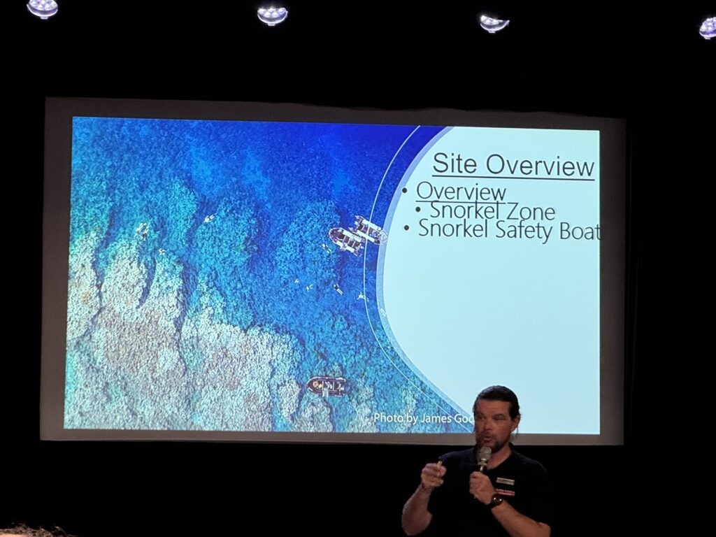 Next came the snorkelling brief. Though we’d been concerned we wouldn’t have many chances to snorkel, it sounds like there should be at least two or three snorkelling excursions.
