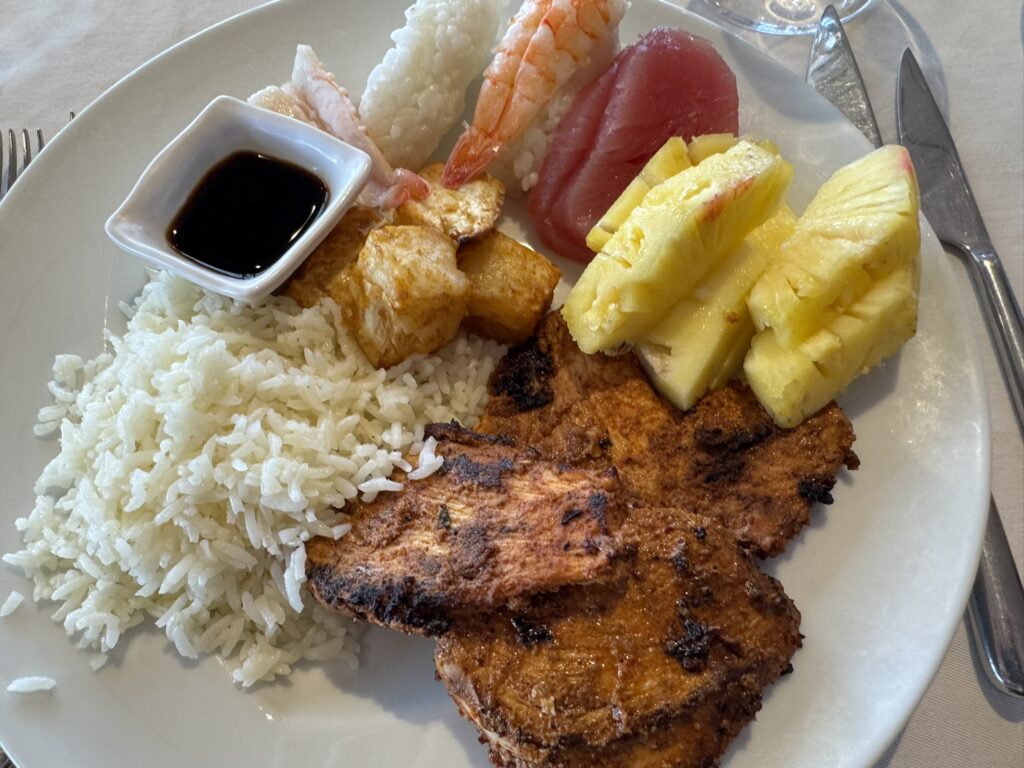 The joys of traversing the Pacific! We’ll keep an eye on the menu in the future, but I won’t complain if future lunches include copious amounts of sushi-grade tuna.
