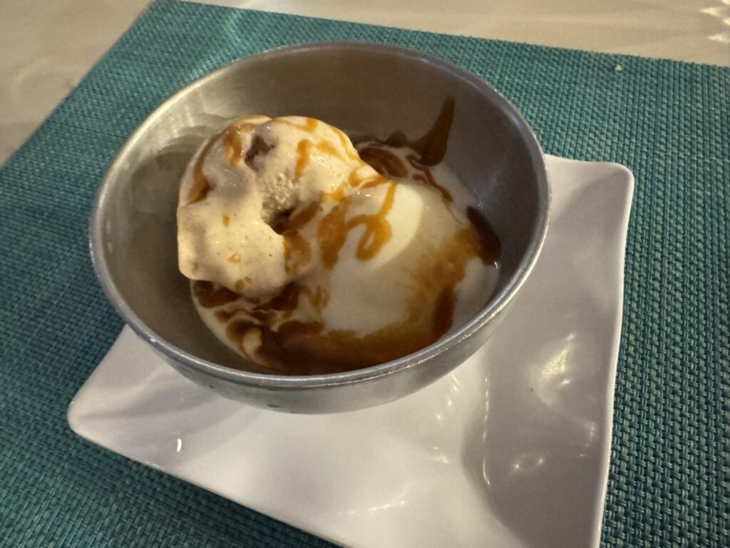 The kids each had cinnamon and vanilla ice cream with caramel and chocolate sauce for their desserts: