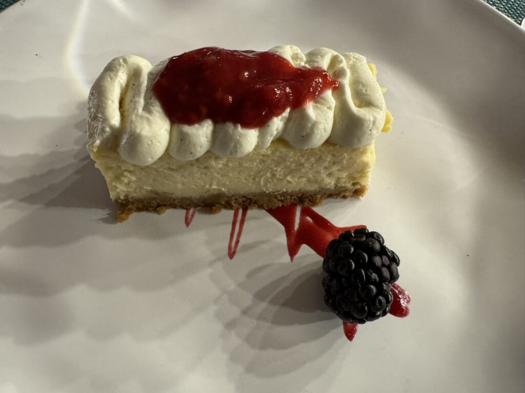 No serve-yourself berries, but I was able to get a small bowl upon request. The strawberries were in good shape but the raspberries were past their prime. Might be best to focus on tropical fruit this trip. Otherwise, I had a smoked salmon bagel with cream cheese.