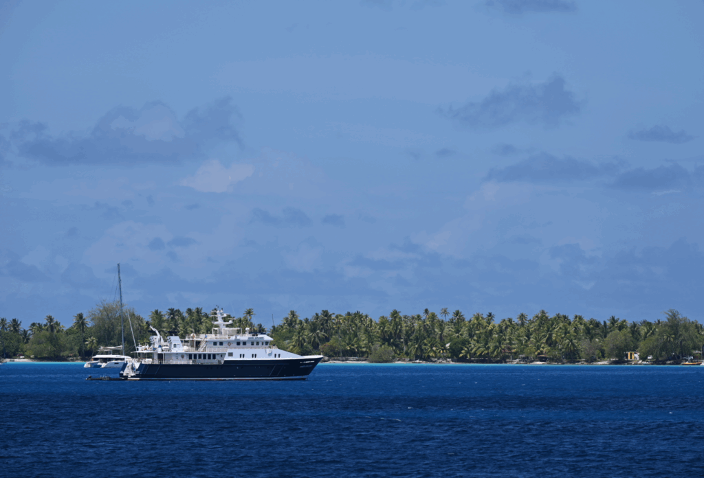 No food photos this time around – maybe next time. But we did manage to get a shot of some of the atolls as we make our way toward Rangaroa: