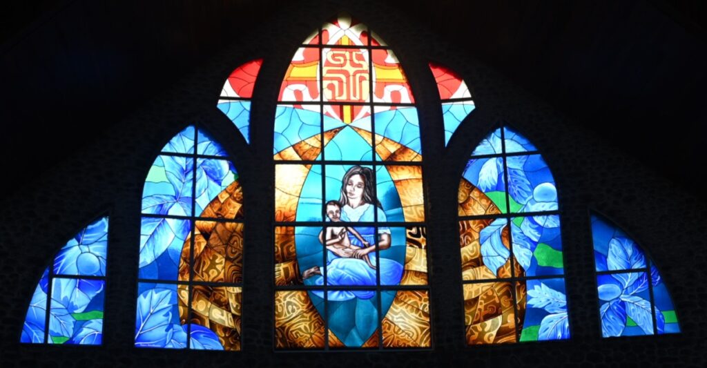 The village is known for its Catholic church, and its beautiful stained glass windows: