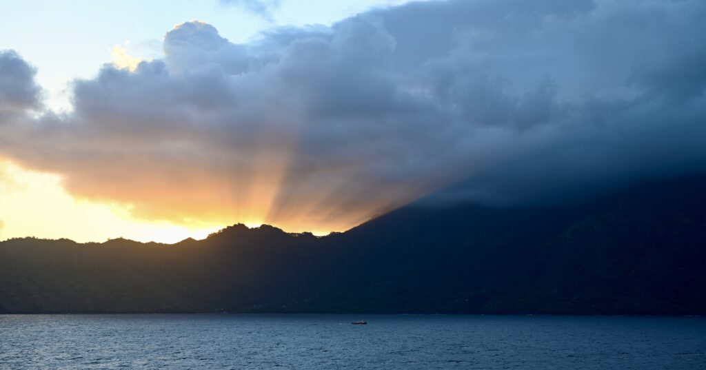 This culminated in the first real rainfall we’d experienced in the Marquesas – we’ve lucked out, as it’s typically much rainier than it has been these past few days.