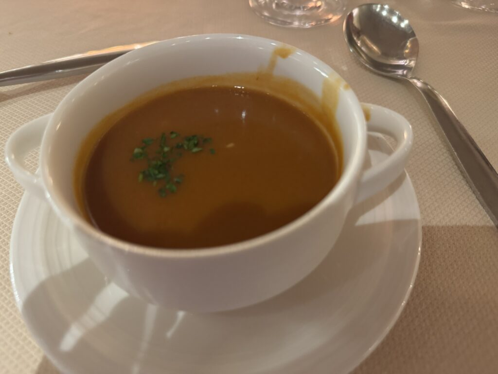 My wife and I had the lobster bisque as our starters: