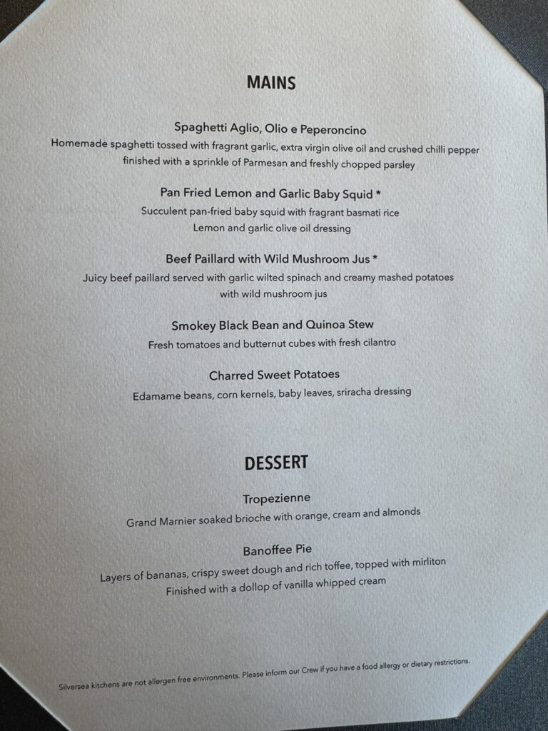 The issue lies in that they are not switching up the orders within the groups themselves. So in the 3 / 4 pairing, group 3 always gets to go first. Which is irritating, as that’s something we always like with Silversea – you may start off going last, but you can expect to be first at some point during the trip. Except we can’t – we’ll always come after group 3.
