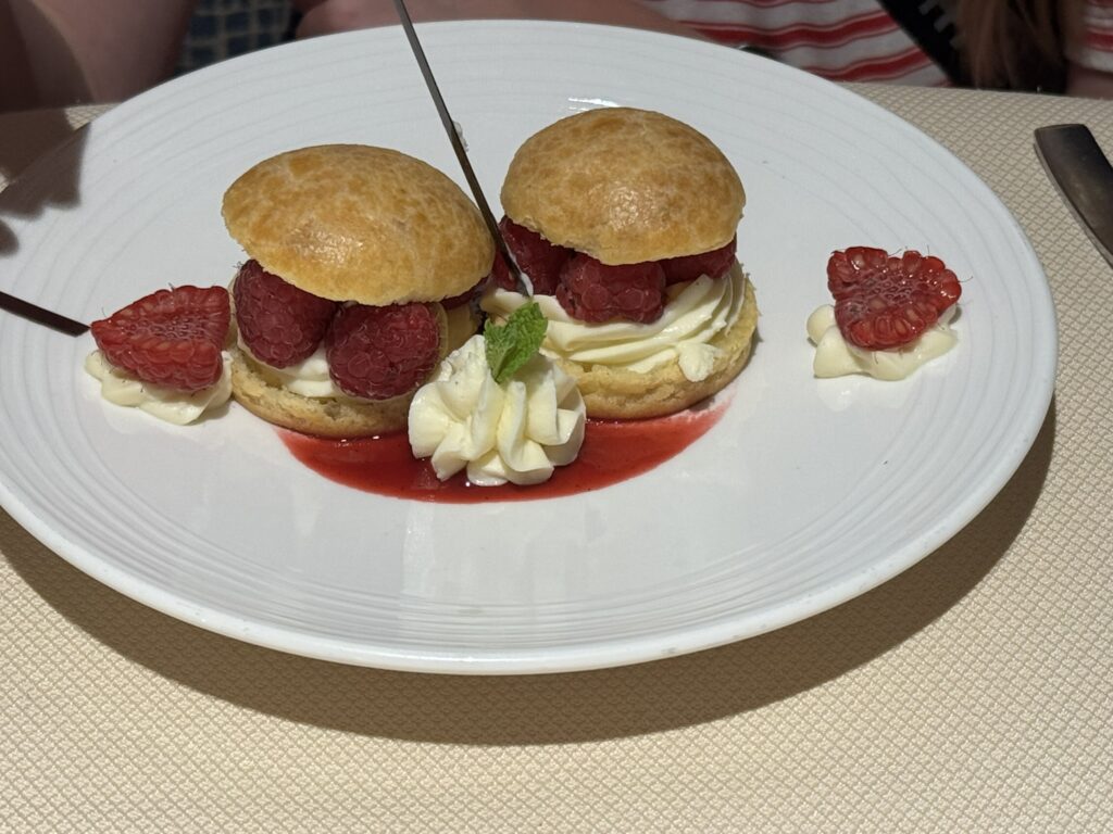 For dessert, my daughter had the raspberry vanilla cream puff: