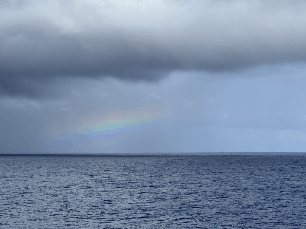 This sort of thing is newsworthy on sea days, as was the beautiful rainbow in the distance: