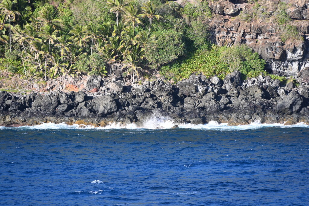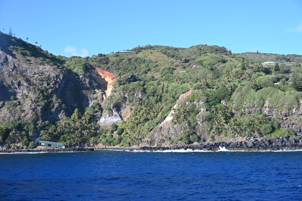 Up at 6:40 am this morning, and we carried on through breakfast with bated breath – watching both Pitcairn Island and the pounding swell through the windows of La Terrazza:
