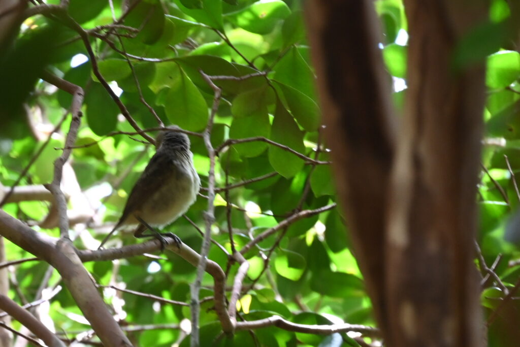 I’ll have to ask Birder Extraordinaire Malcolm for help with identification but we’re pretty sure it’s the Pitcairn Reed Warbler, an endemic species.