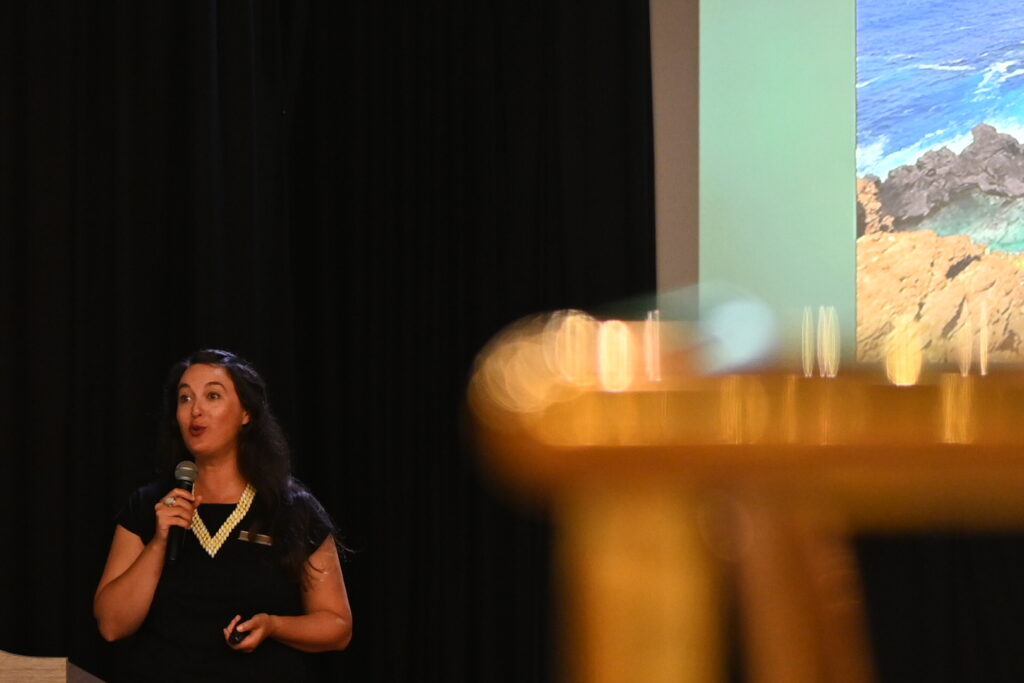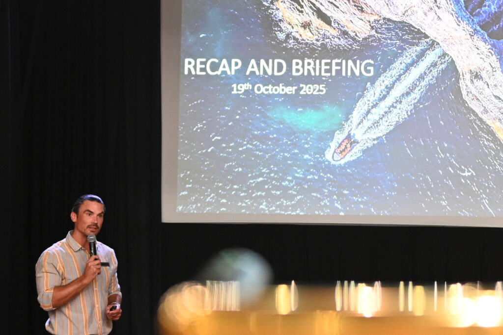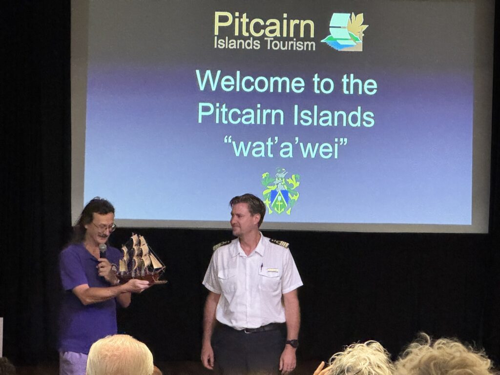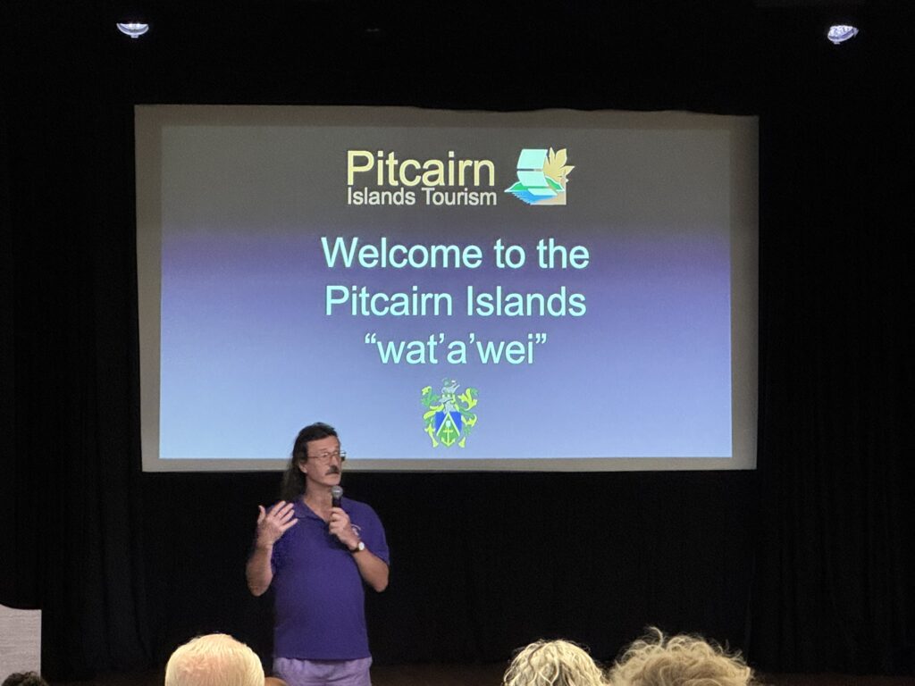 Off to the auditorium, where Pitcairn Mayor Simon Young gave a presentation regarding the island: