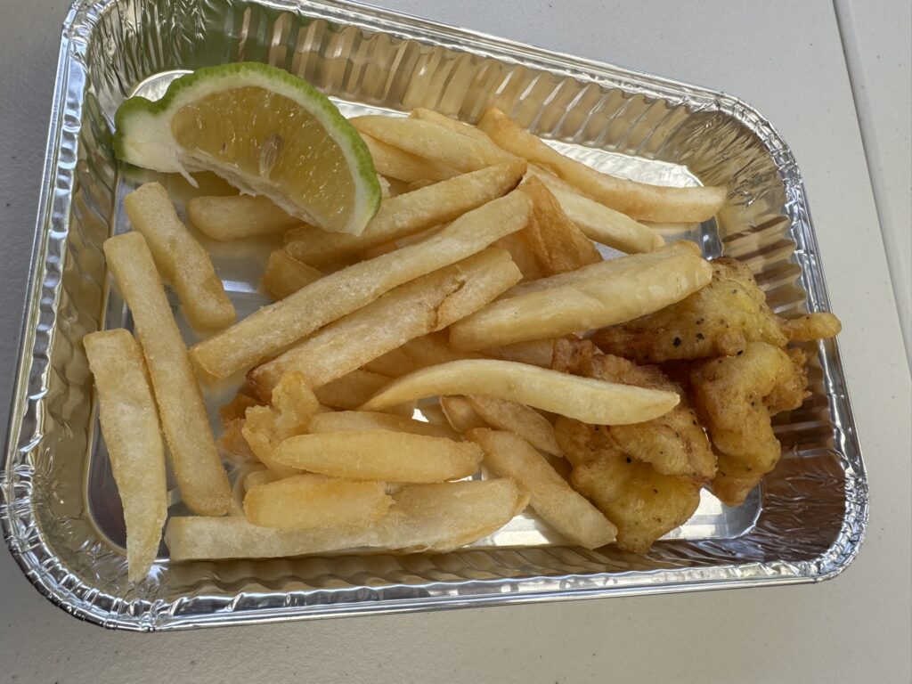 Lunch time! The Pitkerners served up a delicious meal of fish and chips: