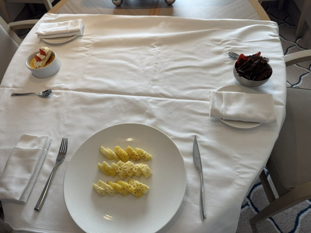 Dinner with Scuba Leader John at La Terrazza tonight – which was very tasty, but which we did not photograph. He recommended we look at North Sulawesi, Indonesia as a future snorkelling destination. He also very much enjoyed the Darwin to Lautoka Silversea cruise, as the Silversea snorkelling team was able to lead a significant number of snorkelling stops (he thinks 16 snorkel excursions in 23 days).
