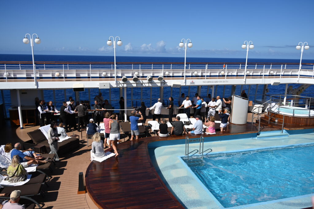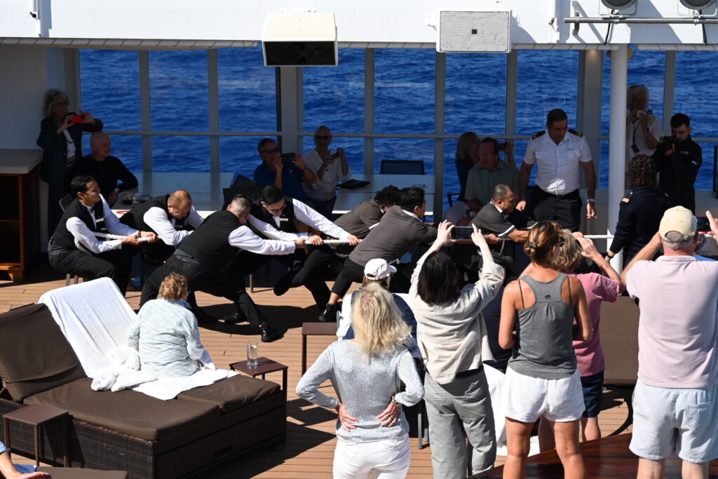 Next on the agenda is a long-awaited bridge tour, for which we gathered at the pool bar at 9:50 am. There were a few stragglers, but we started to head inside shortly before 10 am as planned.