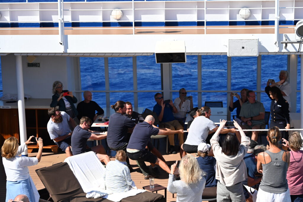 – The ship actually has a sextant on board, and Captain Freddie is going to make one of the bridge officers use it to work out the ship’s location during the sea days;