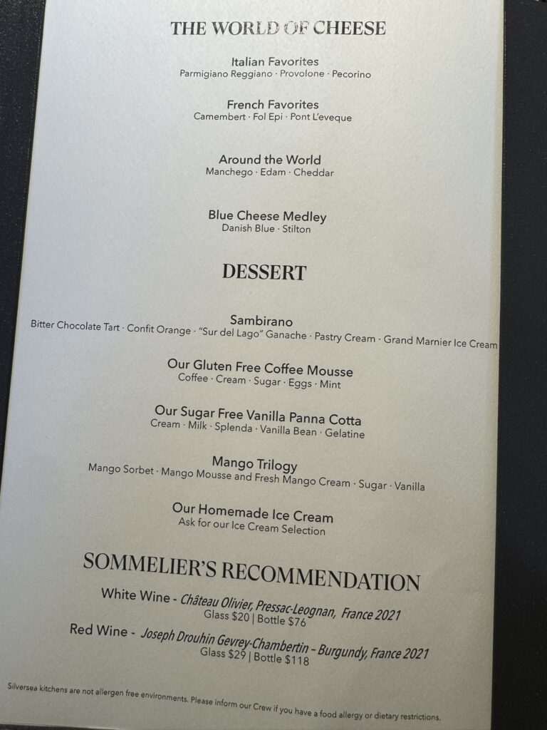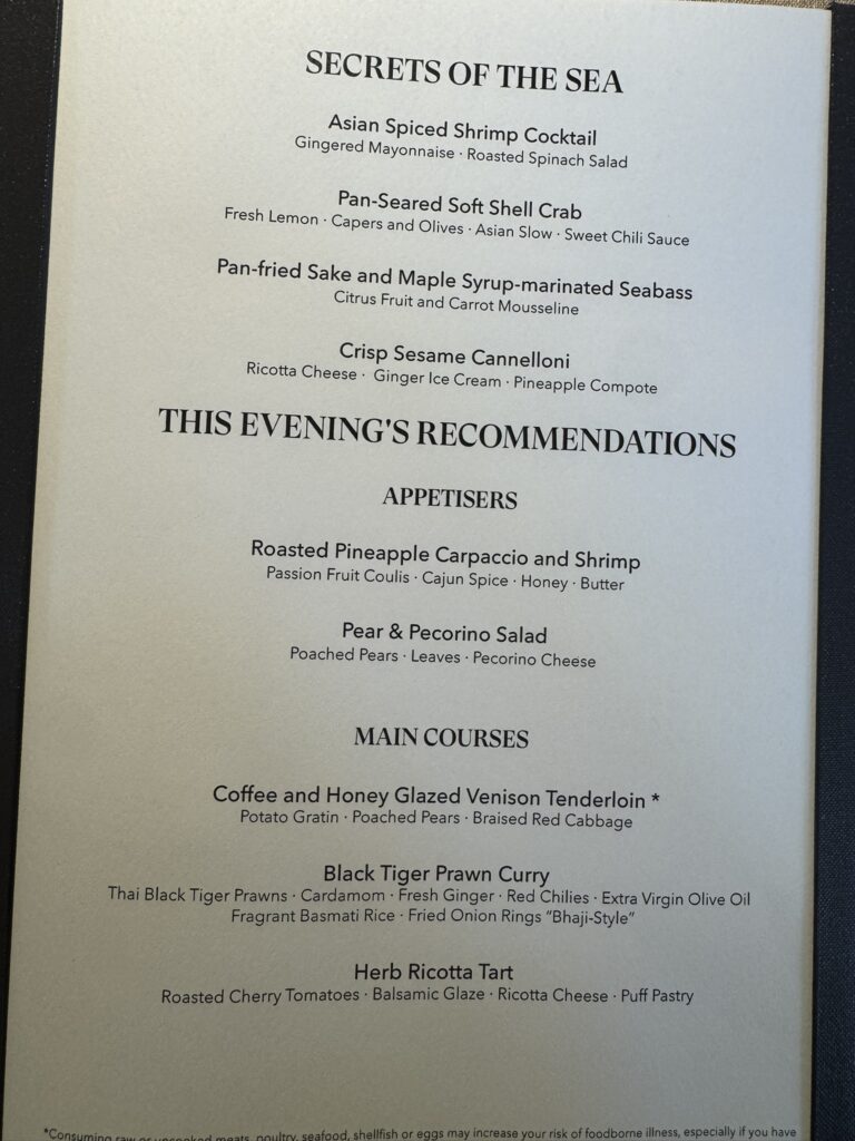 They’re offering half price dining on La Dame for the rest of the voyage – but with the seas growing rougher, we decided to leave it at just one visit this voyage.