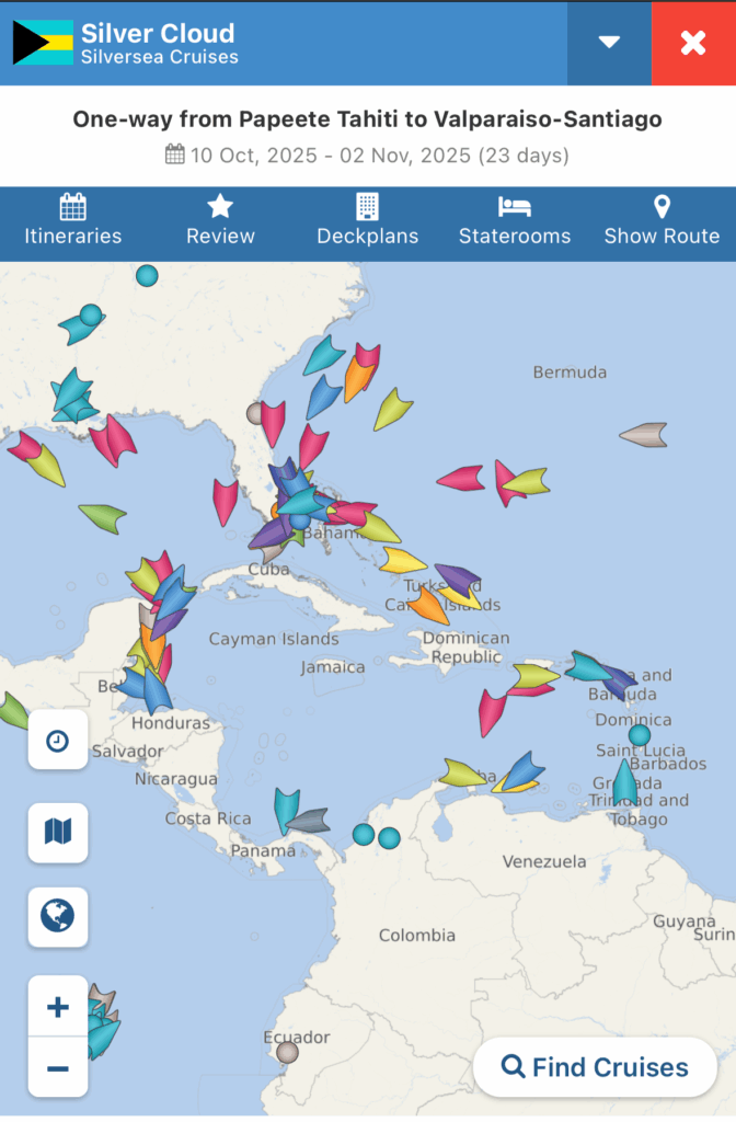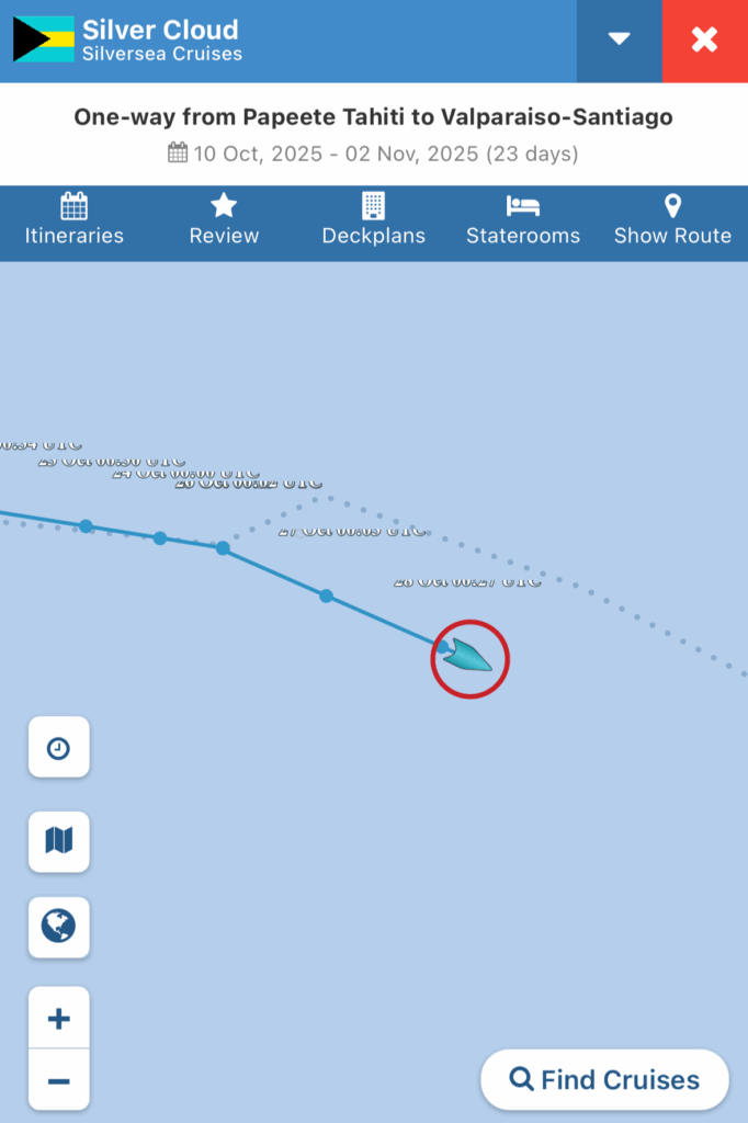 Out of idle curiosity, I had a look at CruiseMapper to see how far it is to the next cruise ship – quite a ways!