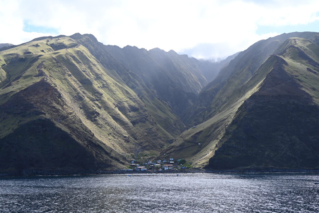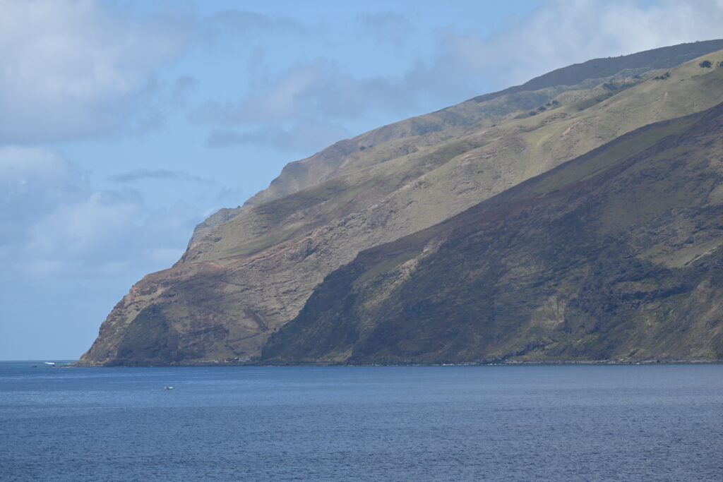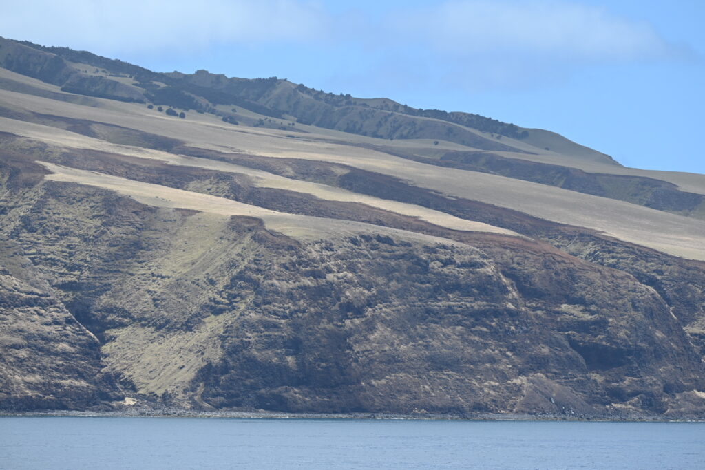 I dashed outside after Second Brunch to get some photos of our sail-in to Alexander Selkirk Island – and the scenery was striking: