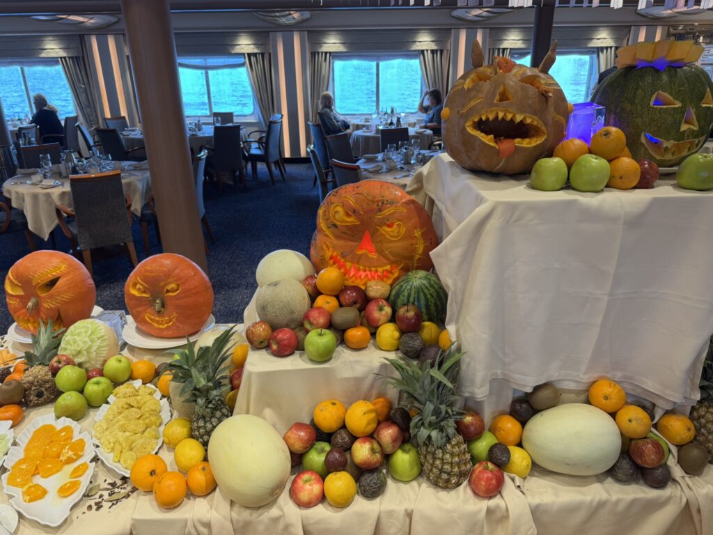 Back to the Silver Brunch once more, which now had a renewed focus on lunchtime foods. Here I buttonholed Kayak Leader Tyler to gauge the odds on us kayaking this afternoon. He did not seem particularly optimistic, which is unsurprising given the four metre swells we passed through en route. Ah, well – it always seemed like a long shot, so we’ll just hope we get to go for a zodiac cruise.