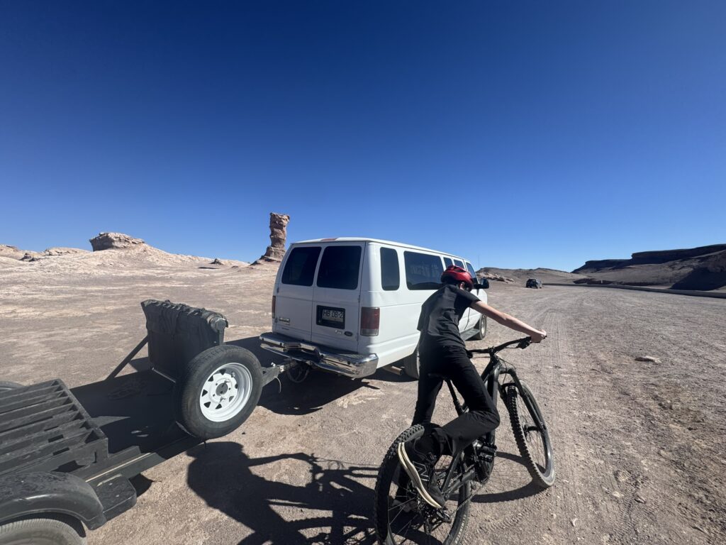 It should be noted – because many guests struggled to comply – that there are no saddlebags for this ride and you are not allowed a backpack or fannypack. So if it doesn’t fit in your pocket, you can’t bring it. If you need to take off a layer you can tie around your waist. There is a brief water break where Explora provides the water and compostable cups – which they collect and return to the hotel.