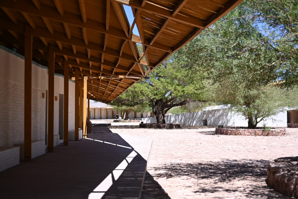 A view toward Explora’s private area – with loungers and shade structures