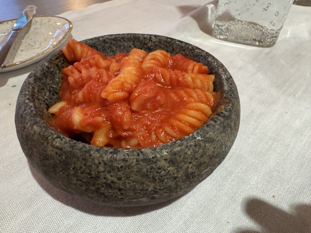 Our son elects to try the pasta pomodoro: