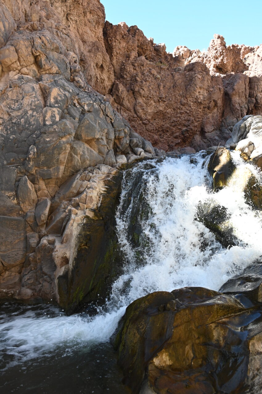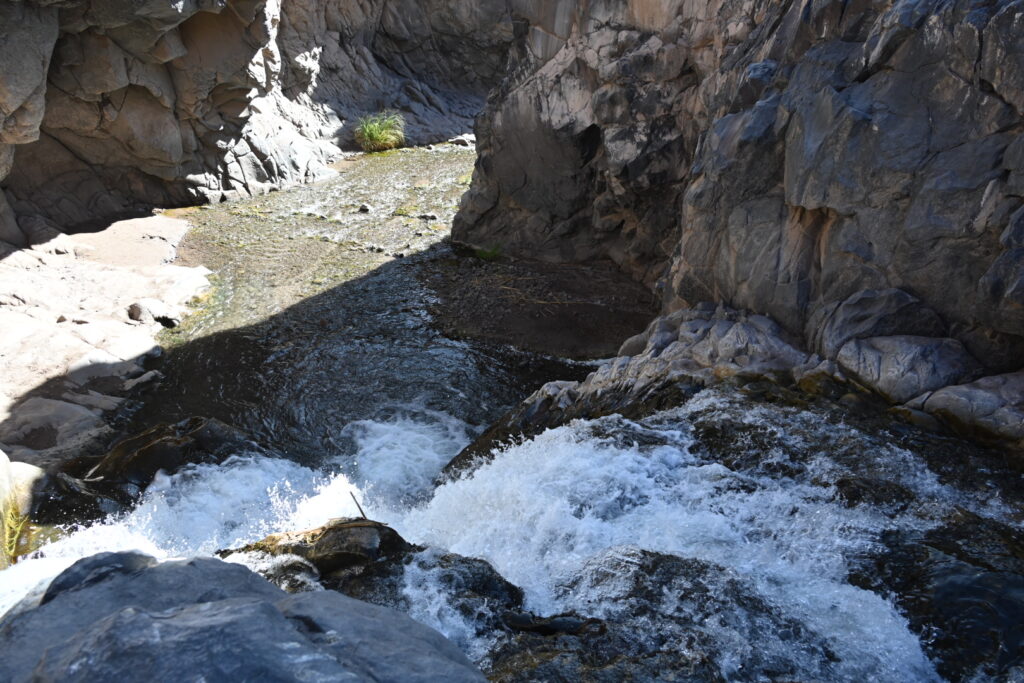 We repeat the cycle again and again – wading through the streams, then climbing down the rocks – pausing occasionally to take in the scenery:
