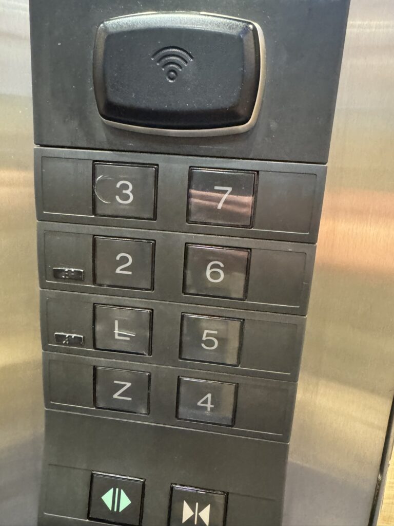 Running up and down the elevator, we notice that it has one of the strangest numbering systems we’ve ever seen: