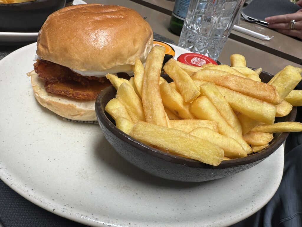 Off to the lobby bar again for lunch. The kids and I order the crispy chicken sandwich: