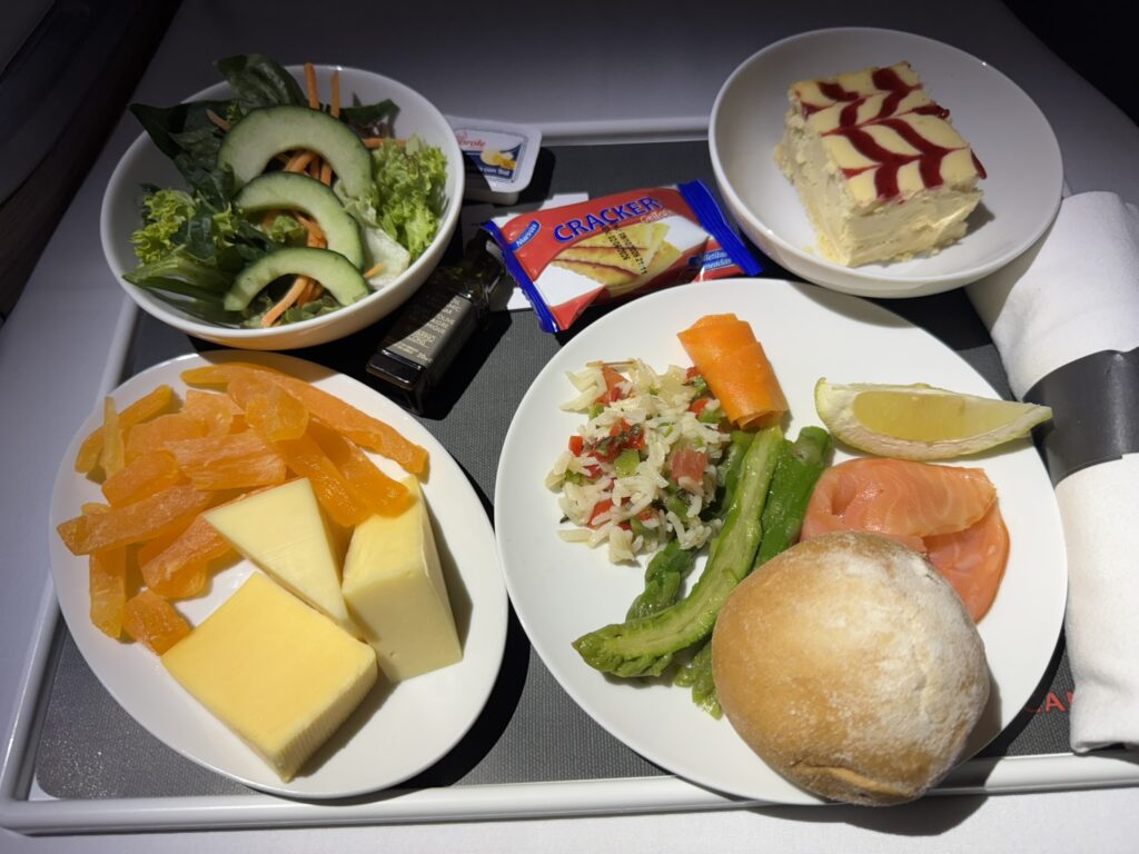 I also ask for the ‘express’ dining option, in which all of the cold elements are brought out all at once. It may impinge somewhat on the dining experience but I’d rather scrape out a few extra minutes of sleep if possible!