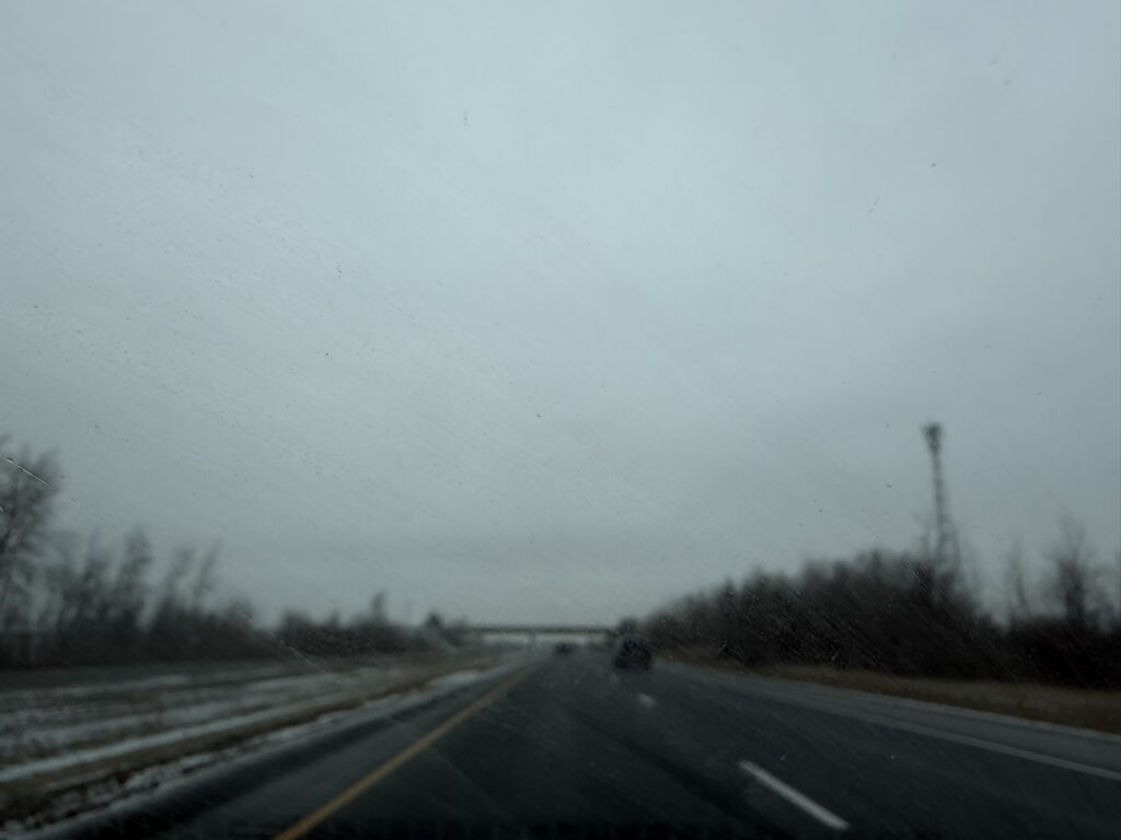The roads weren’t particularly busy, though there was a steady stream of snow that turned to rain as the road wore on.