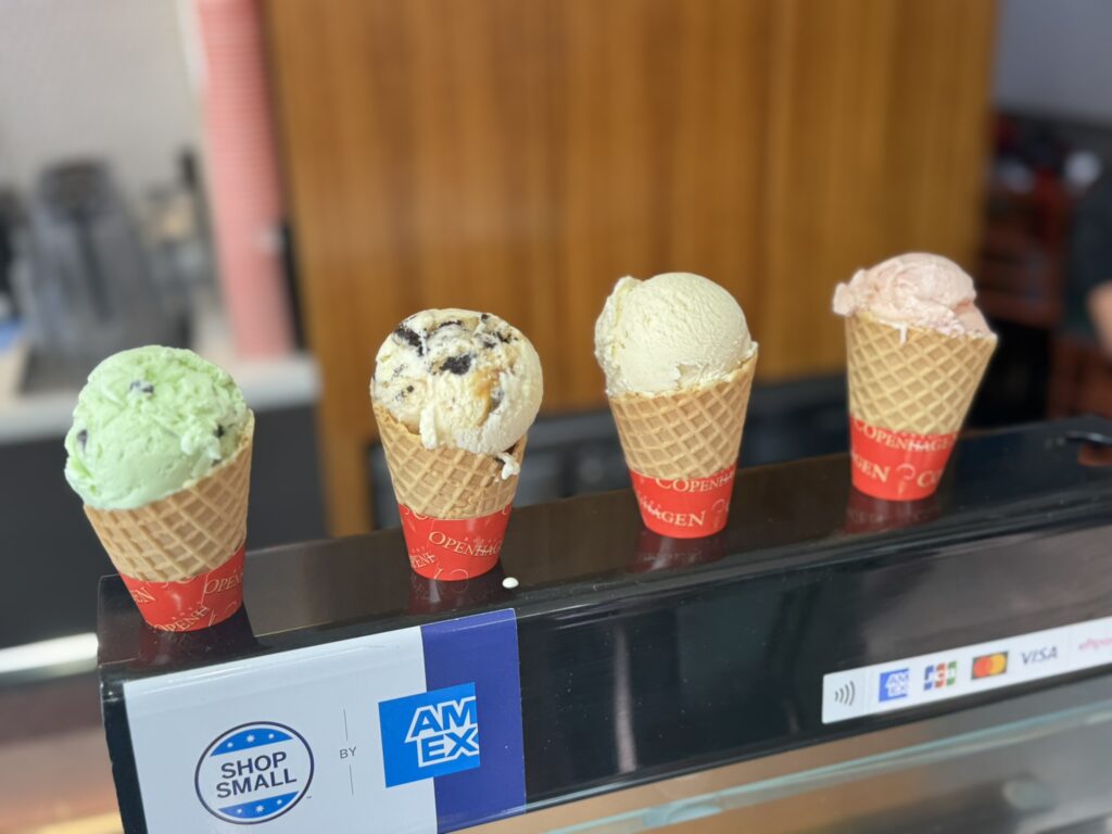 All very tasty. After, we head to Royal Copenhagen Ice Cream for a few small cones:
