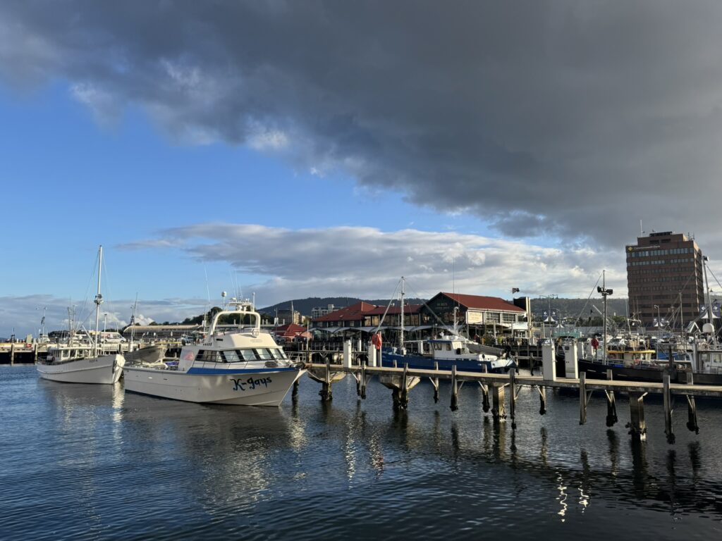 Hobart is considerably further south than Sydney, so the weather is much cooler – but still a pleasant 17 Celsius (63 Farenheit). We Canadians feel quite at home.