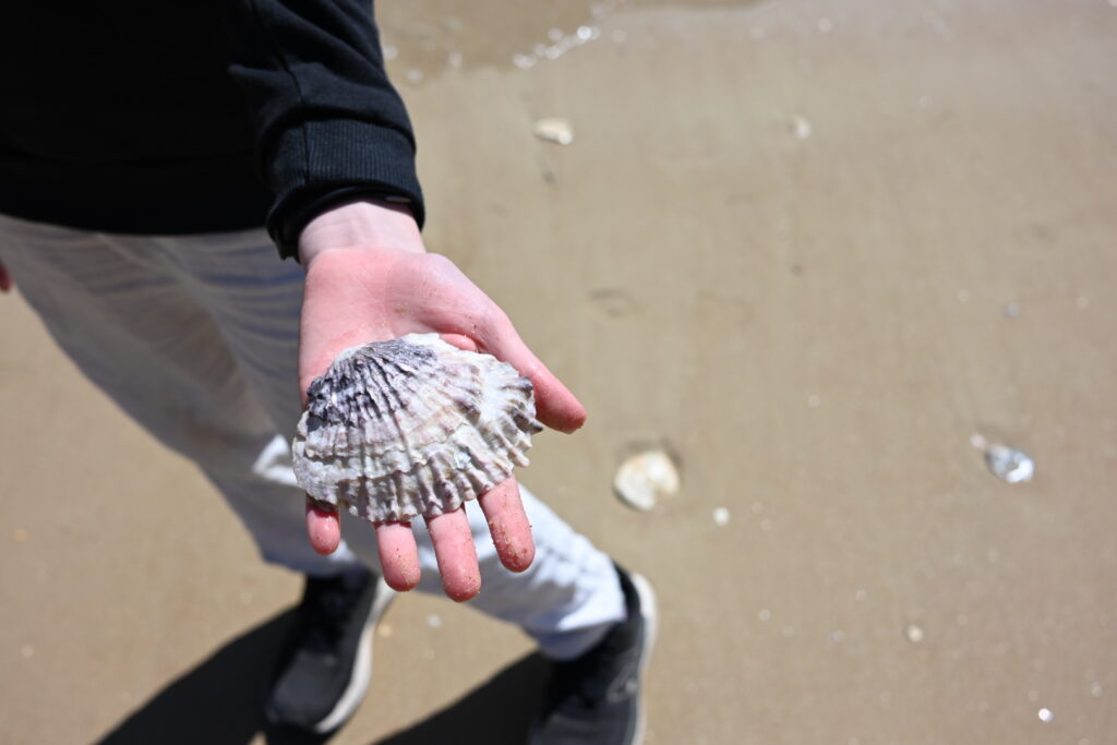 Our daughter finds some lovely shells – which we photograph, then return to the beach: