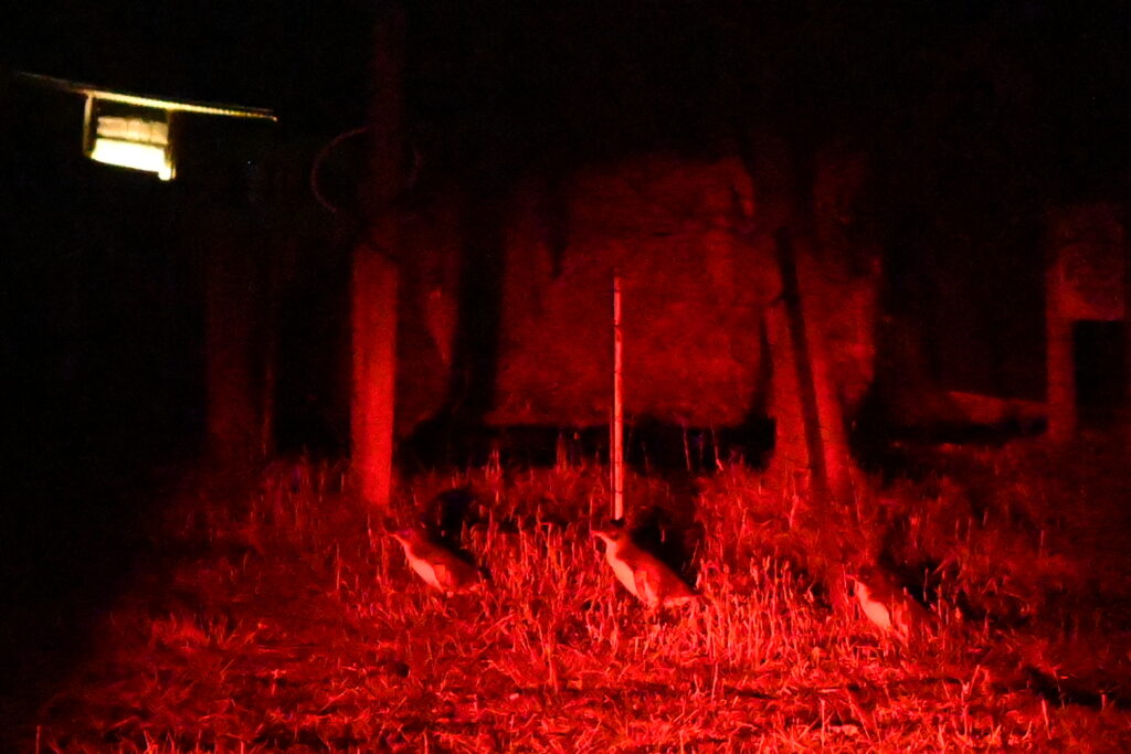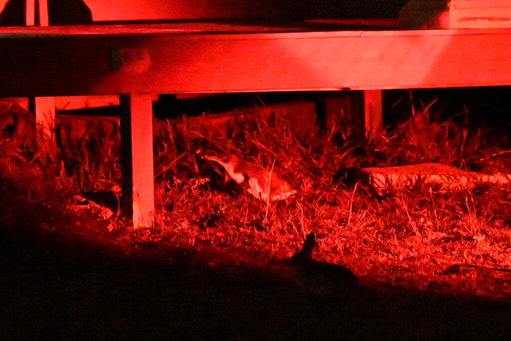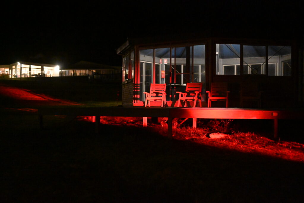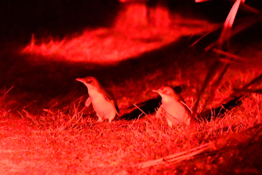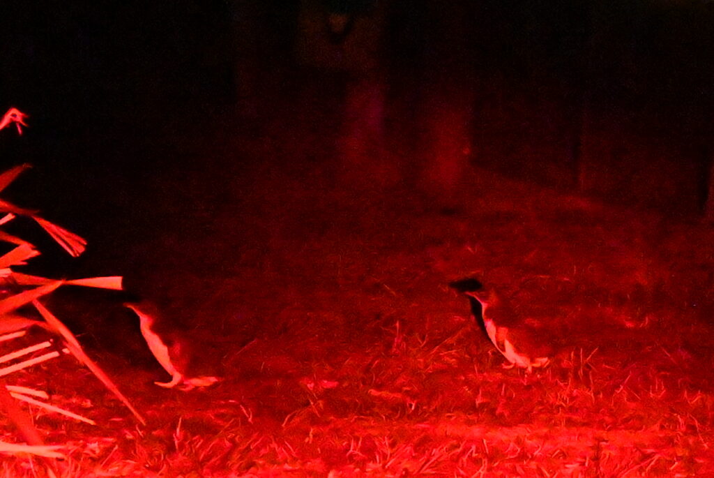 We head down to the special penguin viewing platform, and several of the special penguin flashlights are distributed amongst the guests. We have our red light headlamps, but they’re rather underpowered. Good thing we’ve joined an organized tour!