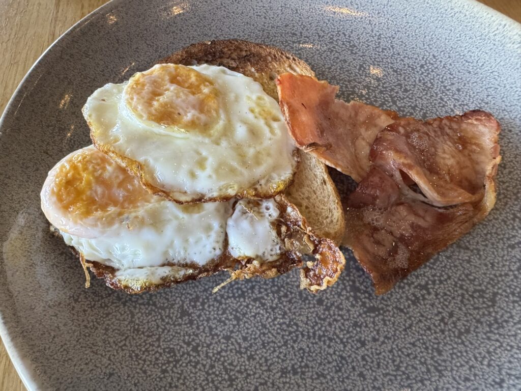 Tasty, though the fried eggs are firmer than I’d like. I’ll get poached next time, as my wife’s seem properly runny.