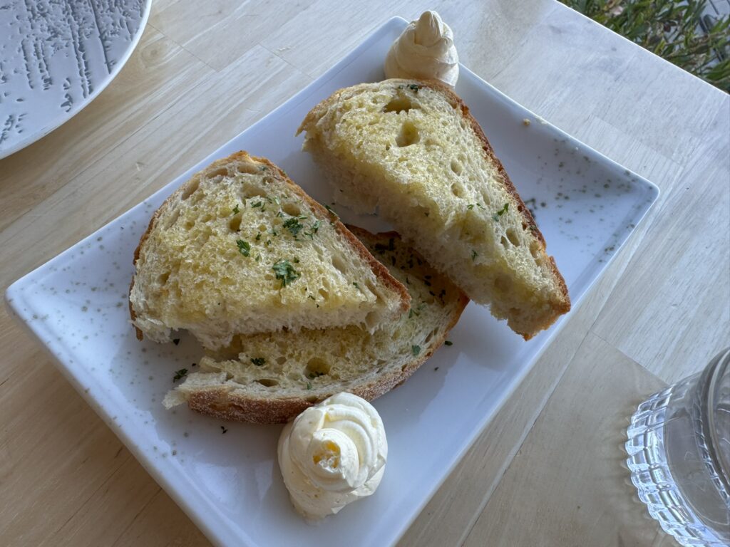 For dinner we start with some garlic bread: