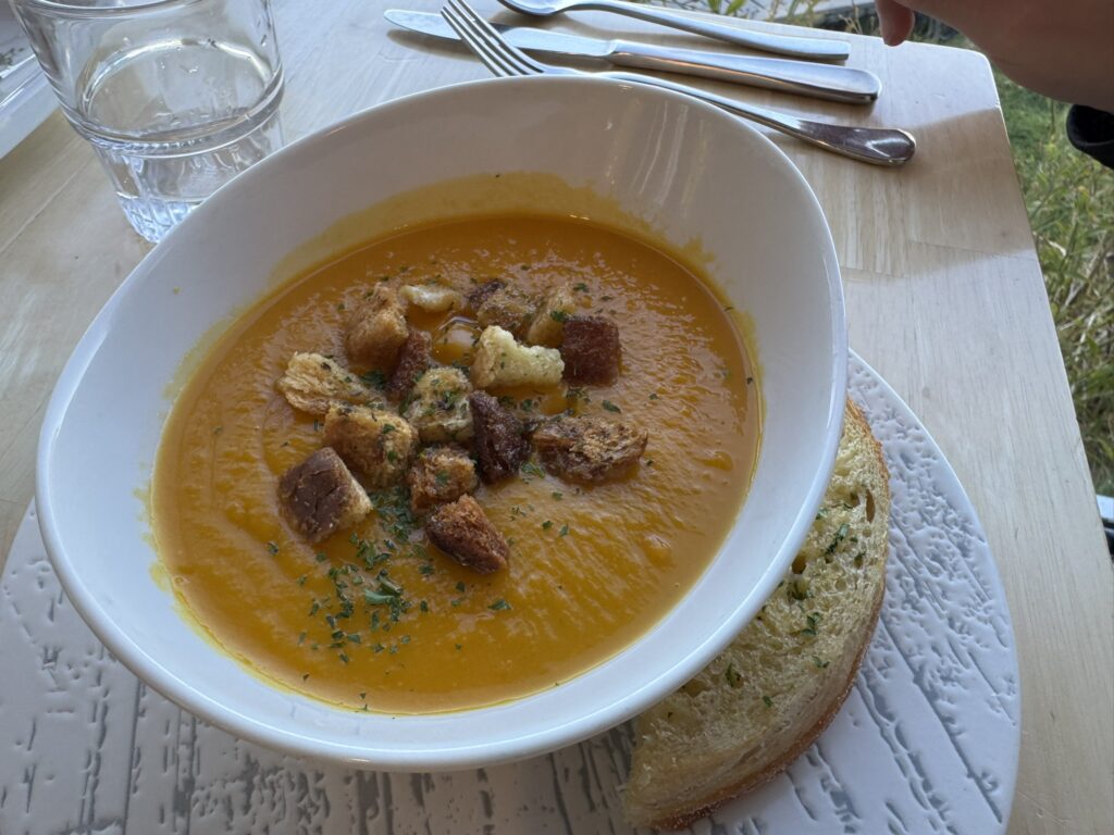 While our son has the pumpkin soup as his starter: