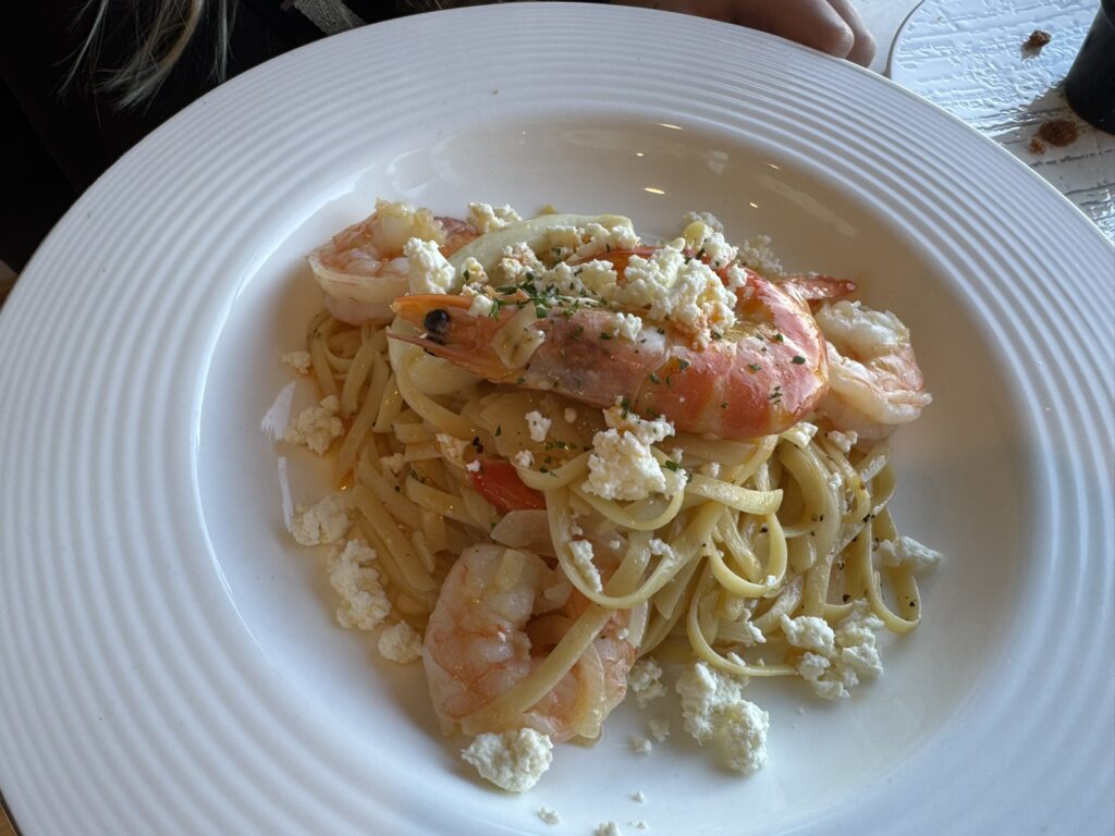 On to the mains – my wife and our daughter have the spicy chilli prawn pasta: