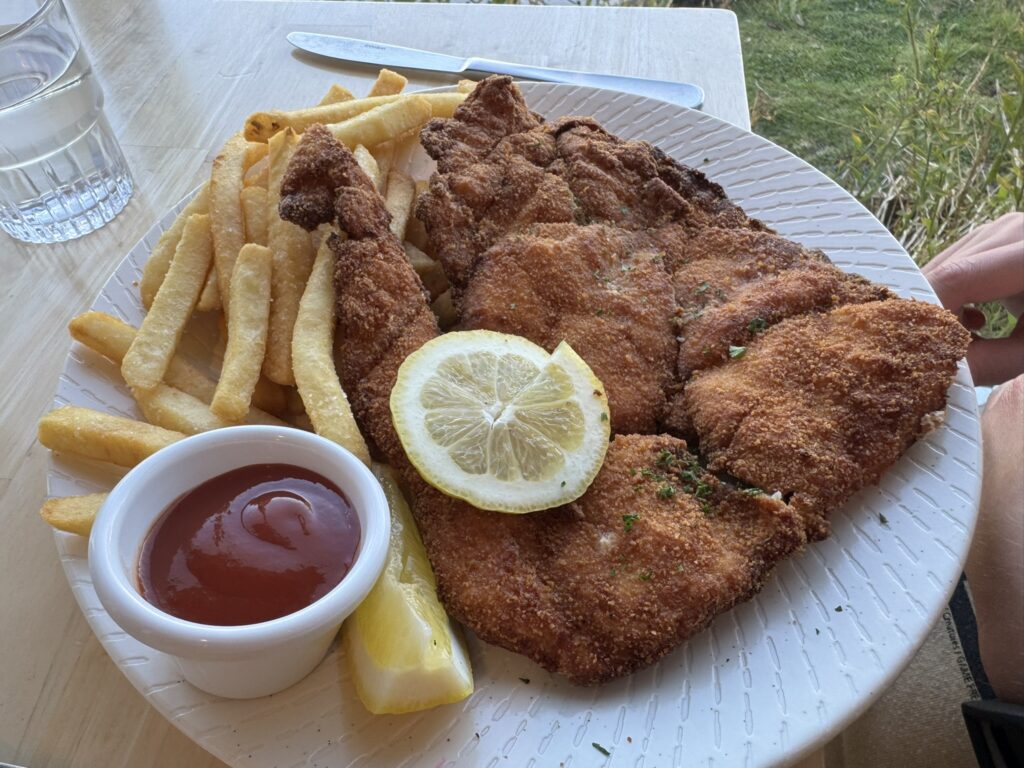 Our son has the chicken schnitzel: