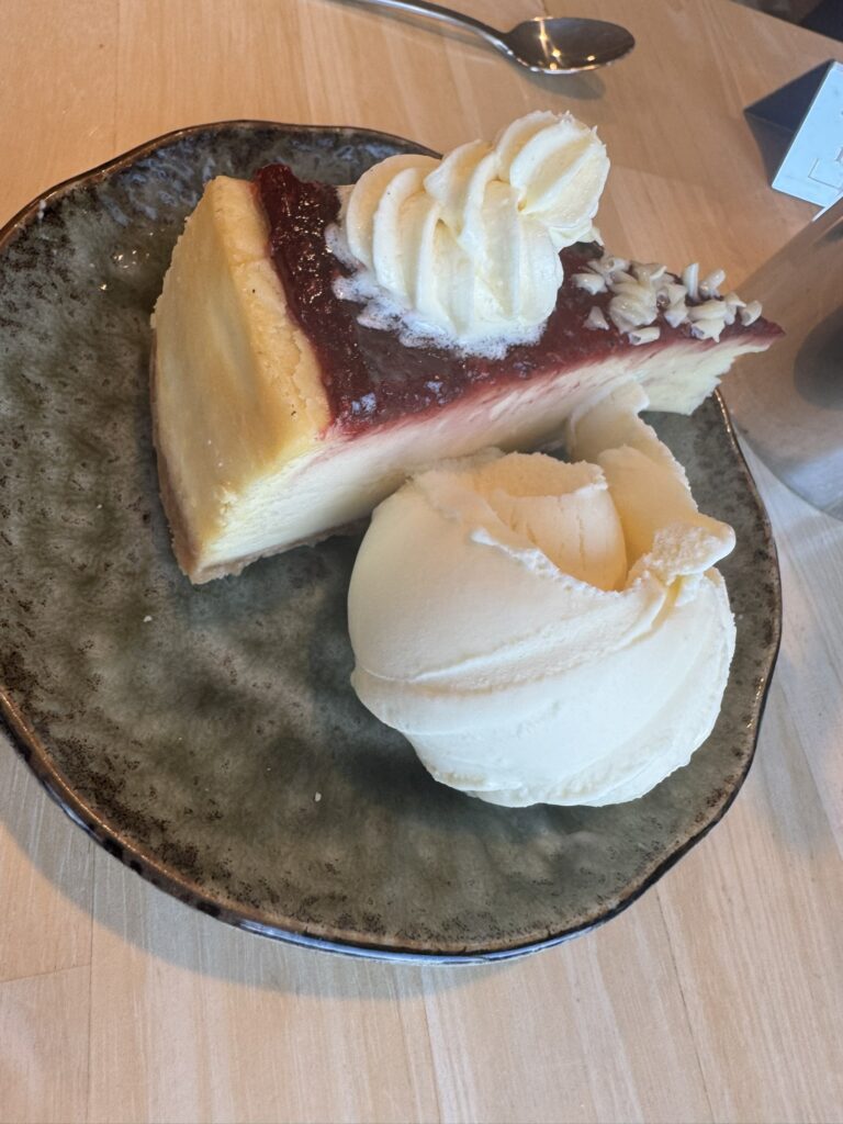 Then on to dessert. I order the raspberry cheesecake: